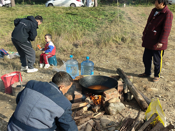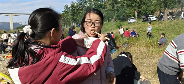 抵达梨仙湖湿地公园后,各班按照预定计划迅速在指定区域“安营扎寨”。原本静谧的河畔瞬间被欢声笑语填满,洗菜声、搭灶声、谈笑声交织成热闹的生活乐章,野炊这一核心环节就此拉开序幕。