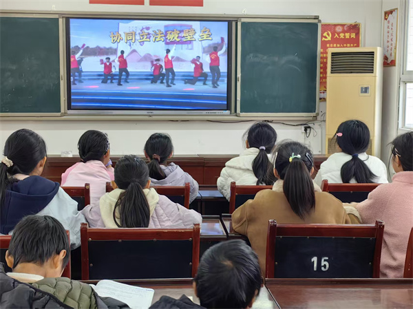 五六年级学生在会议室集中收看“2025川渝宪法宣传周”主题活动视频直播。节目以情景剧、微视频、现场讲述等形式,生动展示川渝两地法治故事和“宪法在我身边”的真实案例。同学们边看边记录,积极互动,纷纷表示要从小树立宪法意识,做知法、守法、用法的新时代小公民。